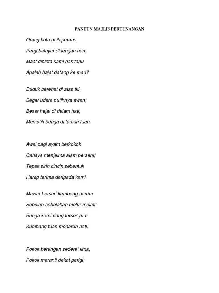1) koleksi pantun pembuka acara / majlis. Melati kuntum tumbuh melata, sayang merbah di pohon cemara; Banyak keluk ke penarik, keluk tumbuh pohon kuini; Nggak hanya saat presentasi, kamu juga bisa menggunakan pantun penutup untuk menutup suatu acara, seperti acara perpisahan ataupun reuni. ١٠ ربيع الآخر ١٤٣٩ هـ.